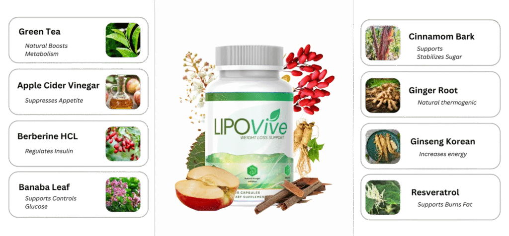 LipoVive stands out as one of the few supplements worldwide formulated with a unique blend of potent plant-based nutrients and botanical extracts. These carefully selected ingredients are designed to naturally support key metabolic pathways in the body — acting directly on the GLP-1 and GIP hormones, which play an essential role in appetite control and fat metabolism.